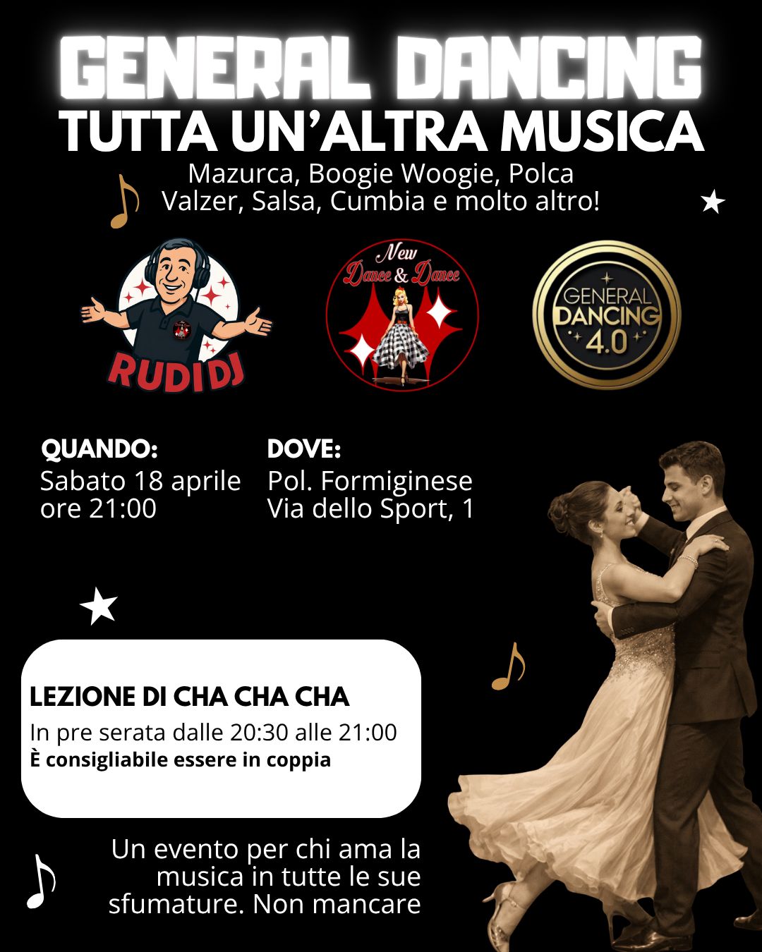 Polisportiva Formiginese Via dello Sport, 1, FormigineGENERAL DANCING 4.0 STA ARRIVANDO A FORMIGINE Due sale, due atmosfere, una sola grande serata. Sala Grande: General Dancing […]